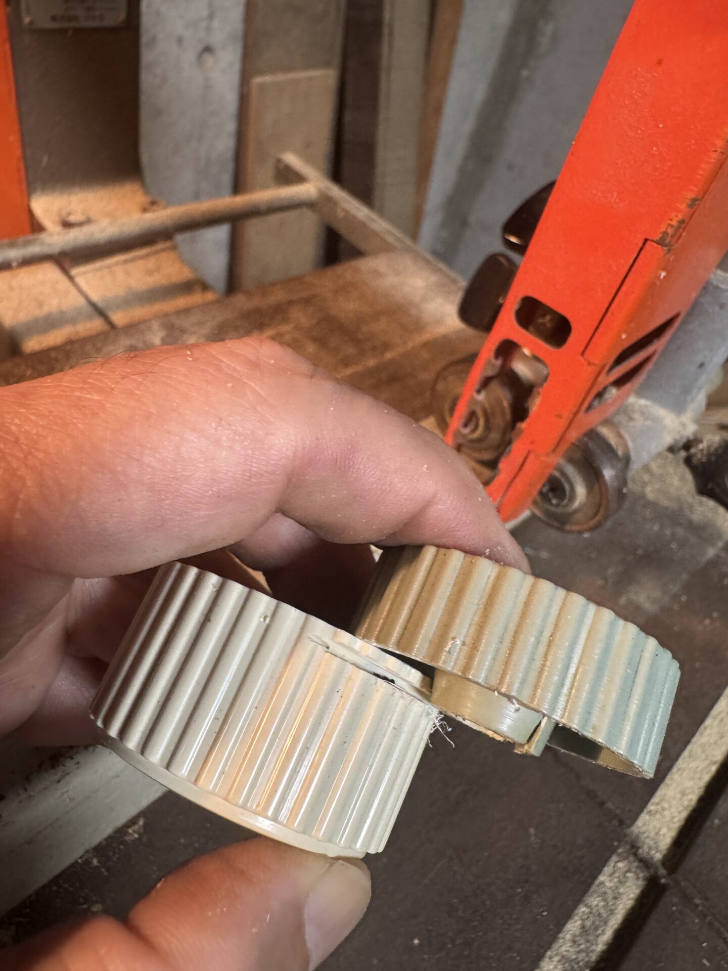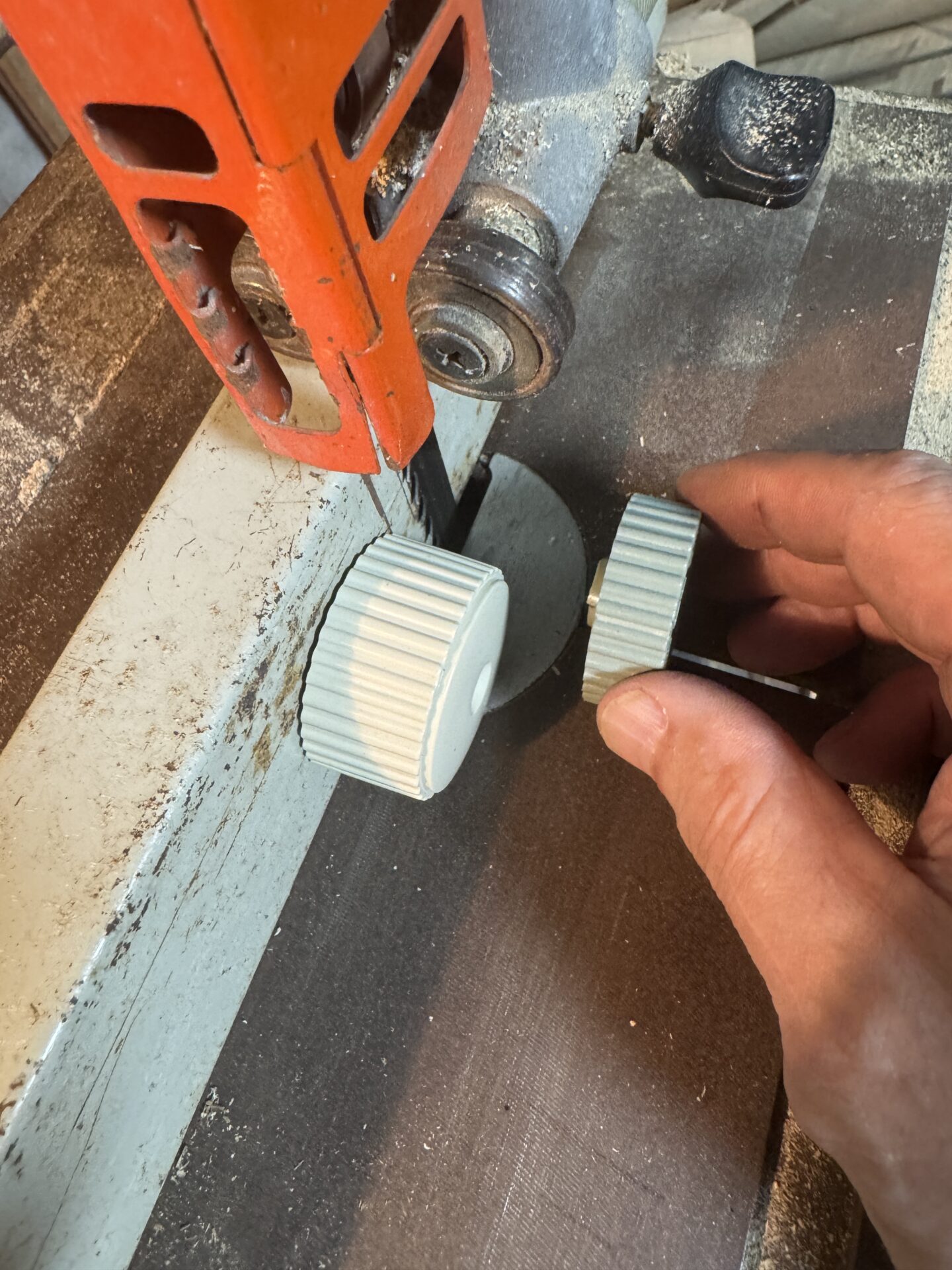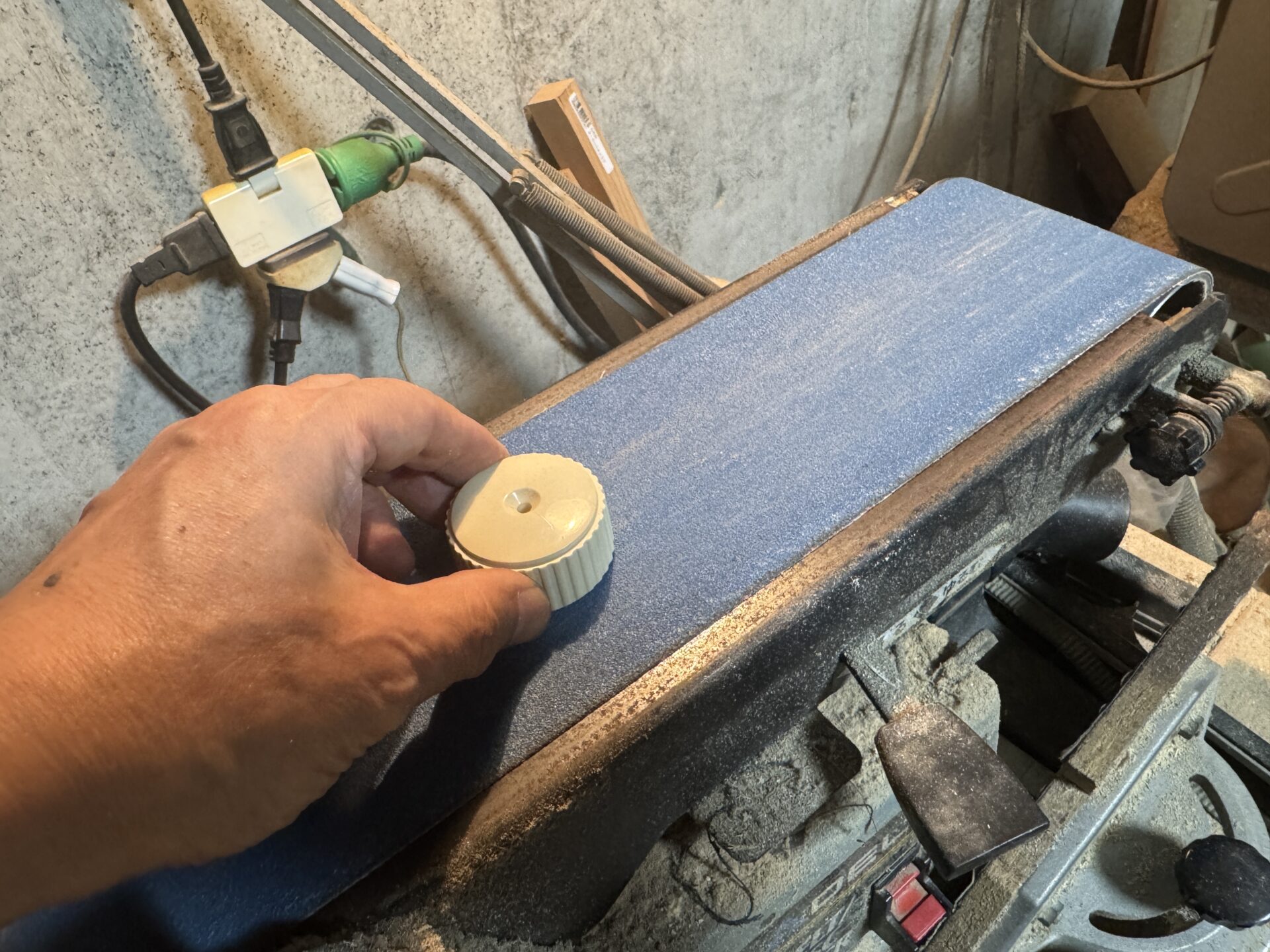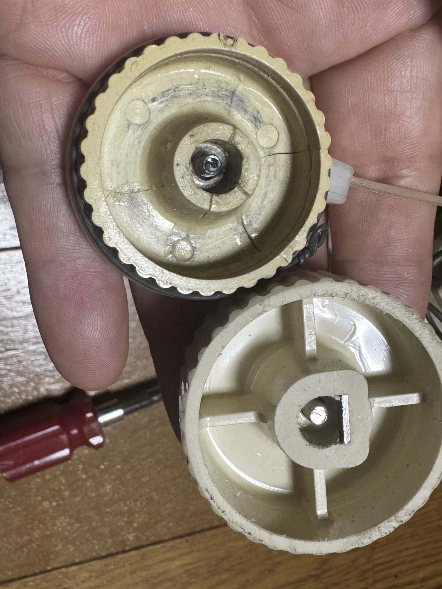 I bought a knob for my old heater, and placed orders other parts, which he currently carried in stock, of the newly purchased one. The Aladdin company doesn’t produce the knob suitable to my old heater, and I needed to modify it as usual. The modification was nothing special– I just lower the height of the knob so that the adjuster dial could be slid on the rotating axis.