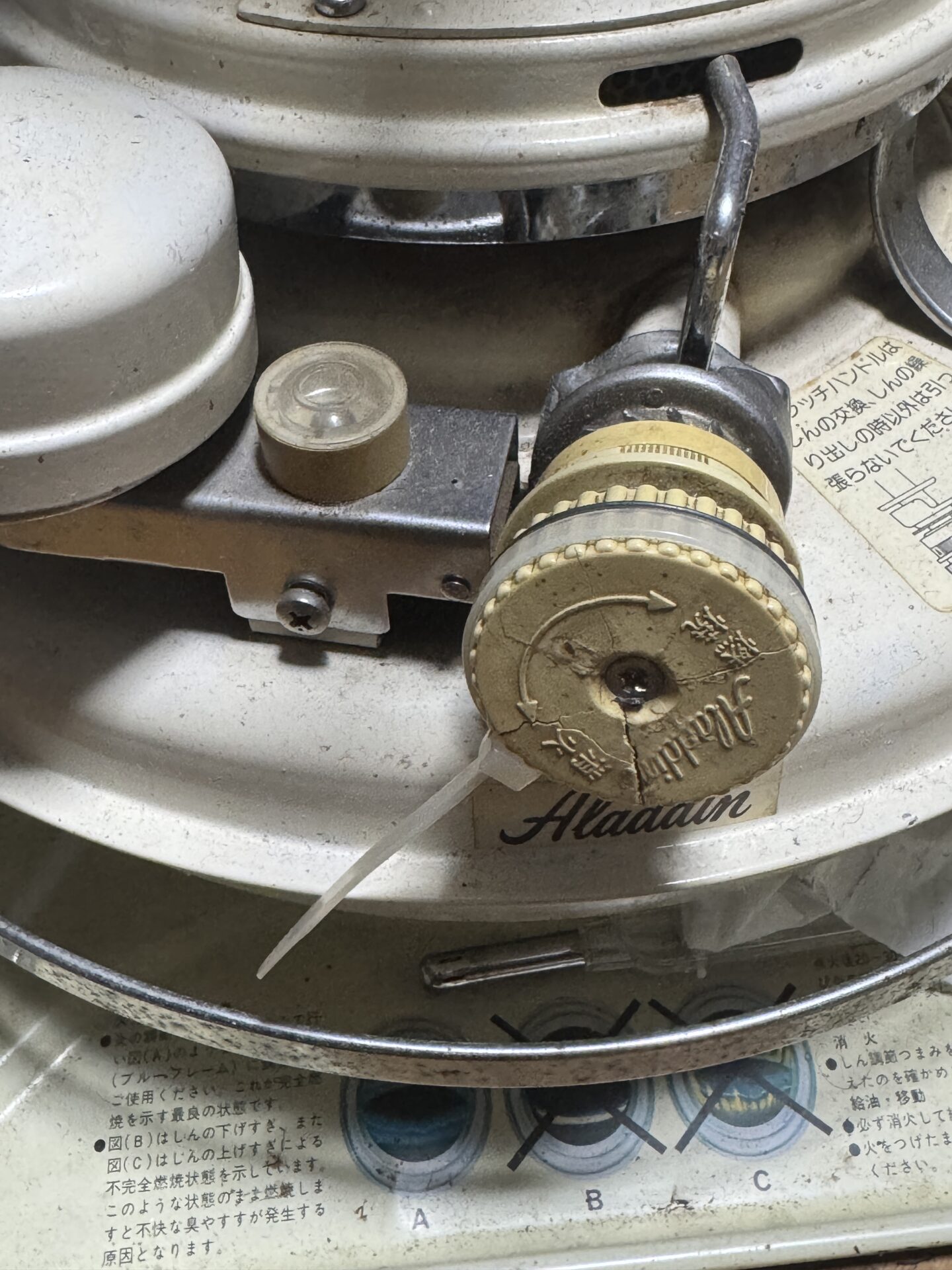 But that’s not the point of this post. I confess I own another Blue Flame heater in my bedroom. I have used it since I was in Hokkaido in the ’90s, so that it’s around me for more than a quarter century. I got it for free from some one, and when it came to my place it was already old. Over time, the plastic parts has become deteriorated, especially the knob dial to raise and lower the wick is badly damaged due to cracking.